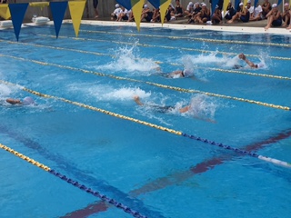 4日(月)水泳大会を行いました。天候が曇りであったため、泳ぎ終わった後は少し寒そうでした。しかし、泳ぎは力強く頑張っていました。自由形の種目では、背泳やバタフライで泳ぐ選手もいて、技術の高さが光っていました。元気な応援によって、出場している選手に力を与えるとともに、大会を盛りあげていました。