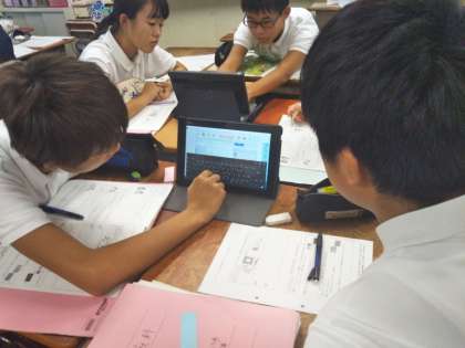 今回は家庭科の授業で、店舗販売、通信販売、訪問販売の違いを学習し、タブレット端末を活用して、支払い方法など調べるなど、グループ学習しながら、話し合ったり、発表もしました。