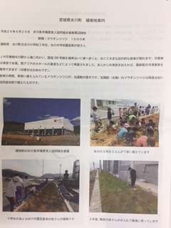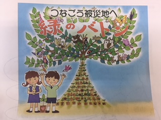 2011年(平成23年)3月11日未曾有の大地震とそれに伴う大津波が東北地方の海岸を中心に襲いました。それから1年後、徐々に始まっていた風化に危惧する教育現場の先生方の声を受けて、尊い数多くの命を奪ったこの震災の記憶を残そうと、被災地の苗木を全国で育てて、もう一度被災地で植樹する「緑のバトン」が始まりました。旭東中学校も参加し、タブロイド判の報告書が届きましたので紹介します。なお、旭東中学校が参加した植樹地は、宮城県女川町と岩沼市です。