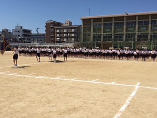 これから体育大会に向けて、学年練習や全体練習が行われます。今日は、3限〜4限に1年学年練習、5限〜6限に全体練習を行いました。天気も良く、気温も少し高くなってきました。練習が終わる頃には、日焼けした生徒の顔を見かけました。