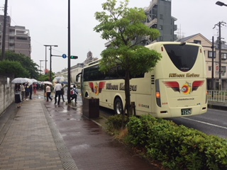 あいにくの雨ですが、全員元気に出発式を済ませ、バスに乗り込みました。