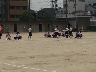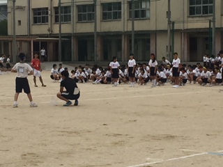 予定通り、体育大会を実施しました。少し雨が降り出しましたが、頑張っています。