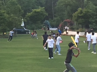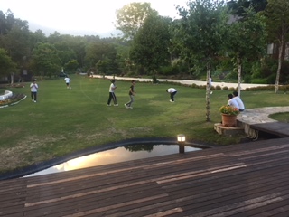 食後の自由時間に、施設にあるボールやバット、バドミントンを借りて気分転換。