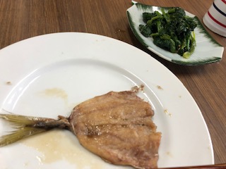 献立はアジの蒲焼きとほうれん草の胡麻和えです。