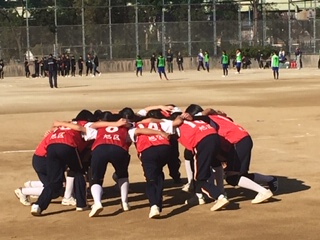 11月18日(日)大阪市立友渕小学校の運動場において、各区の代表チームによるキックベースボール大会が行われました。旭区を代表して、旭東中学校のメンバーが出場しました。結果は、6対1で福島区に負けてしまいました。全員が早朝より集まり、元気いっぱい頑張りました。来年も頑張りますので、応援をお願いします。