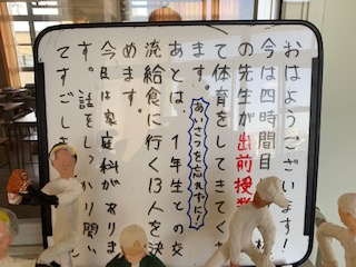 春名先生が体育の出前授業を行うために、新森小路小学校を訪問しました。児童のみなさんは、熱心に授業に取り組んでくれていました。ありがとうございました。