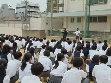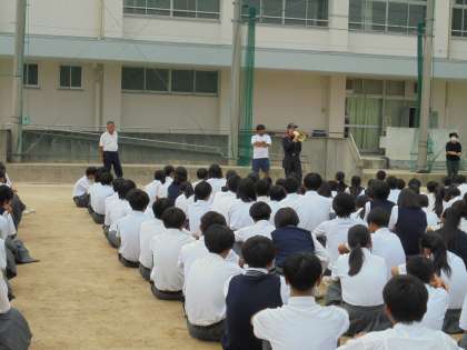 ・今日は、消防署の方に来校していただき、防災訓練を行いました。