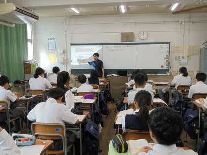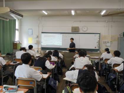 ・今日は、教育委員会の方に来校していただき、1年4組で数学の研究授業を行っています。