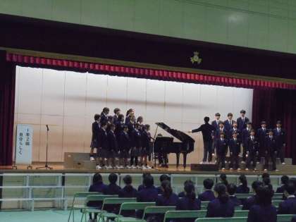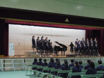 ・今日は、音楽コンクールです。1年生の様子です。どの学級も大きな声で歌っていました。