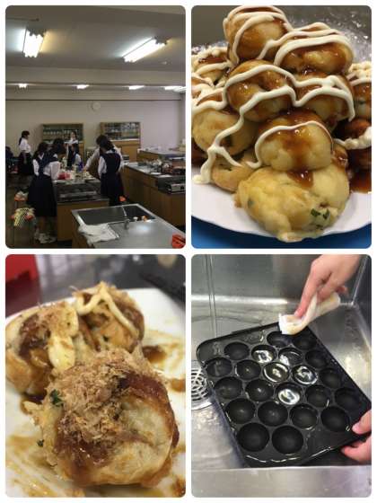 家庭科部では、新入生歓迎調理実習として【たこ焼き】をみんなで仲良く調理していました。