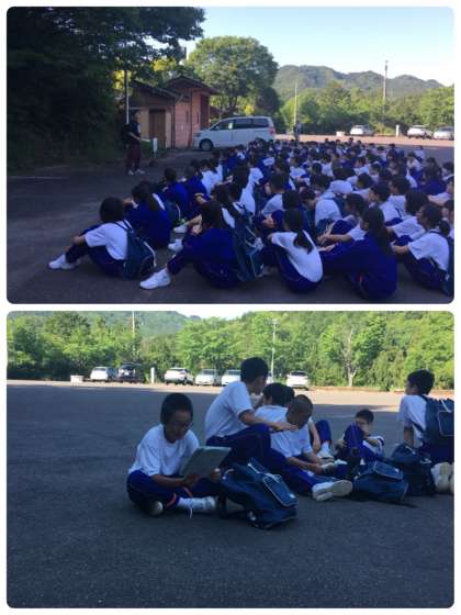 少年自然の家から展望台に向かって2時間ほどオリエンテーリングを行ったのですが、日陰が多く68期生はまだまだ元気です。