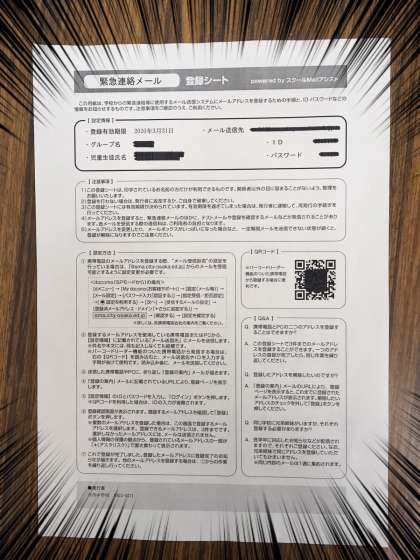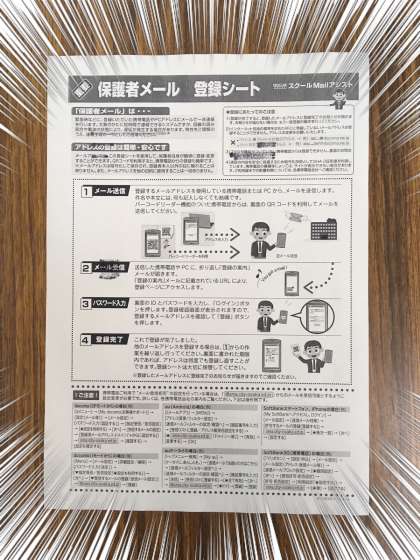 本日、お子様に保護者メール登録のためのプリントをお渡しさせていただきました。