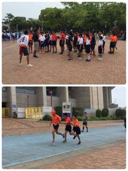 今日の競技は9:30からスタートなのですが、今日の競技に出ない長距離生徒向けに8:30から長居公園の外周【一周2.8キロ】を全力で走るTT(タイムトライアル)が行われました。