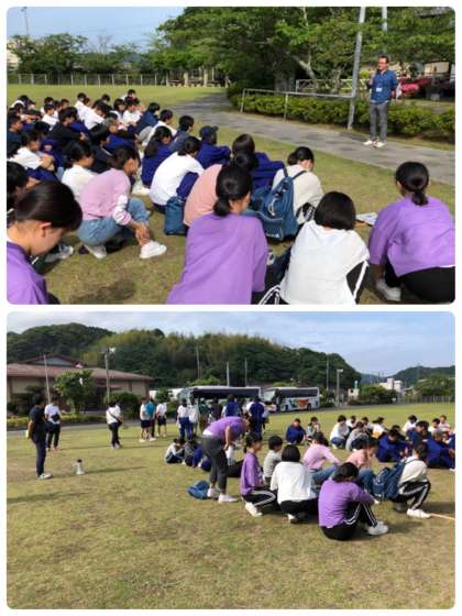 その後集まり、朝の挨拶、説明の後、それぞれの民泊に出発しました。