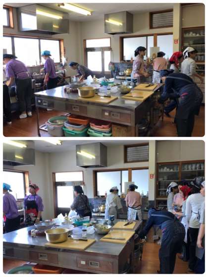 忙しそうに台所で料理中です。