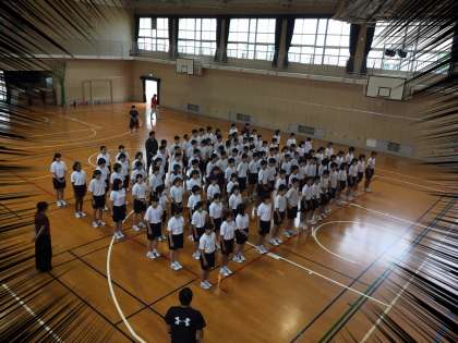今日は、1・2時間目に3年生の運動会の練習が行われるということで、2時間目に体育館にお邪魔してきました。