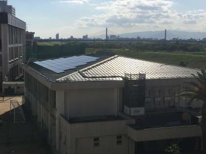 太陽光パネルが設置後は、体育館横に太陽光の発電状況がわかるモニターが設置される予定です。