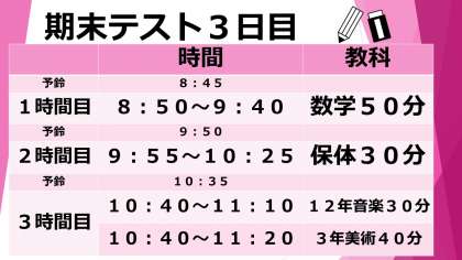 期末テストでの提出物は成績にもかかわってくるので、しっかり提出してくださいね。