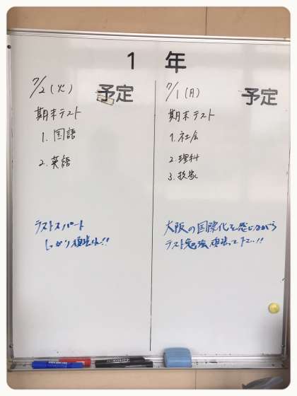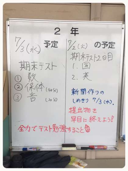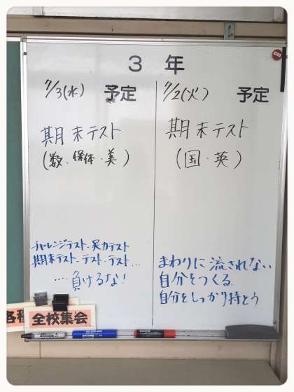 連絡黒板には、毎回学年主任の先生方からのメッセージが書き込まれています。