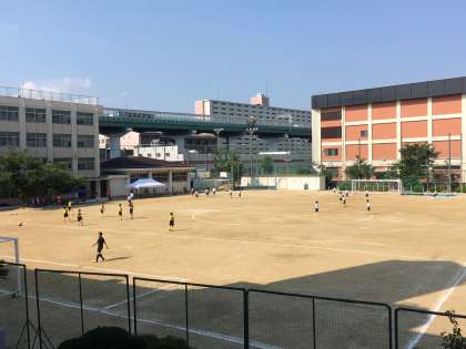 今日は、朝からサッカー部が運動場で1年生大会を行っています。