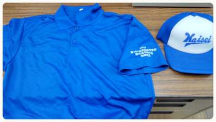 当日はお揃いのポロシャツ、帽子をつけて、楽器をふきます。
