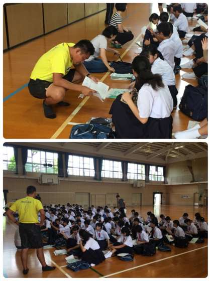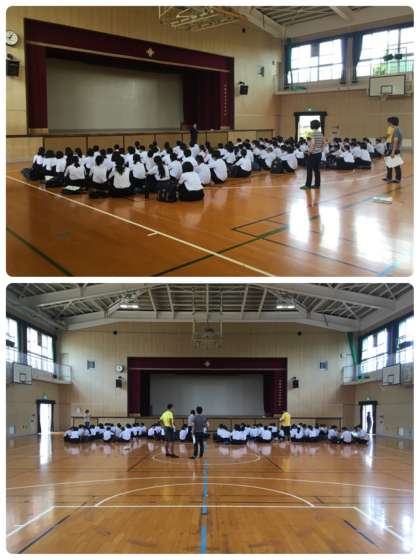 本来は、武道場にて行う予定だったのですが、あまりの暑さに体育館にて行うことになりました。