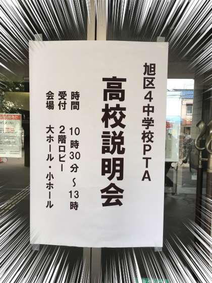 本日、旭区4中学校合同説明会が旭区民センター2階大ホール、小ホールにて行われています。