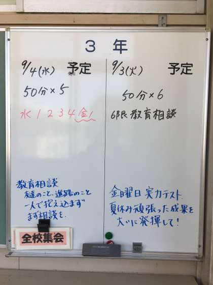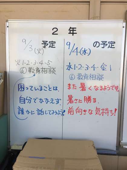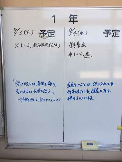 職員室前の連絡黒板には、各学年主任の先生方から、今日も素敵なメッセージが書かれています。