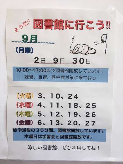 写真の9月の日程を確認して、ぜひ図書館に足を運んでみてくださいね。