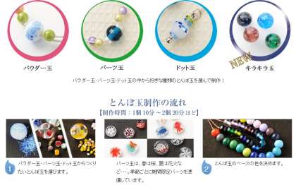 とんぼ玉の制作体験を行います。