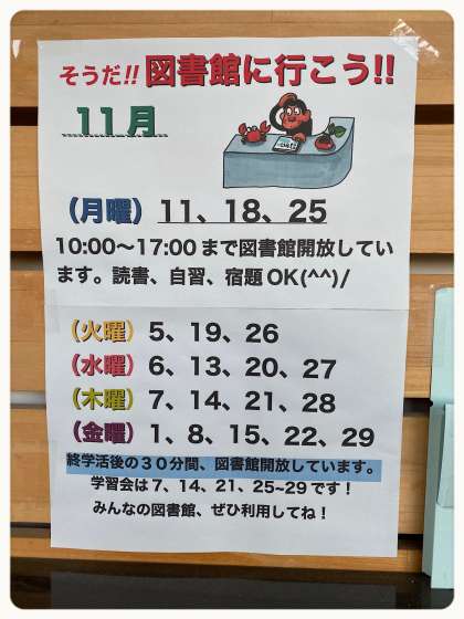 図書館の開館以外にも、学習会の予定も書いてあります。