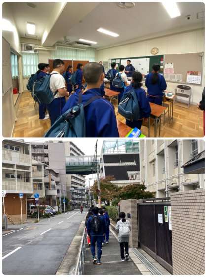 ニーズルーム生徒13名が7:45、元気に中学校を出発しています。