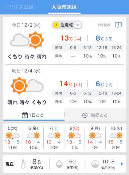 本日の最高気温は昨日より4度低いと言う予報が出ています。