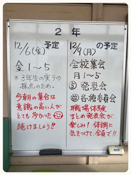 2年生は、職場体験の報告発表会が行われると聞いています。