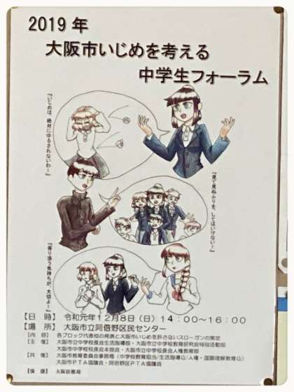 「大阪市いじめを考える中学生フォーラム」が12月8日【日】阿部野区民センターにて行われます。