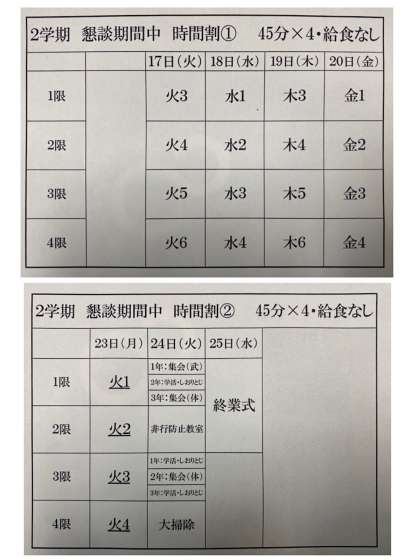 懇談期間中の時間割【12月16日】