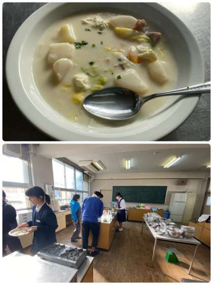 収穫後は、クリームシチューにしていただきました。