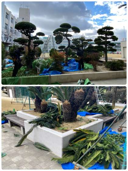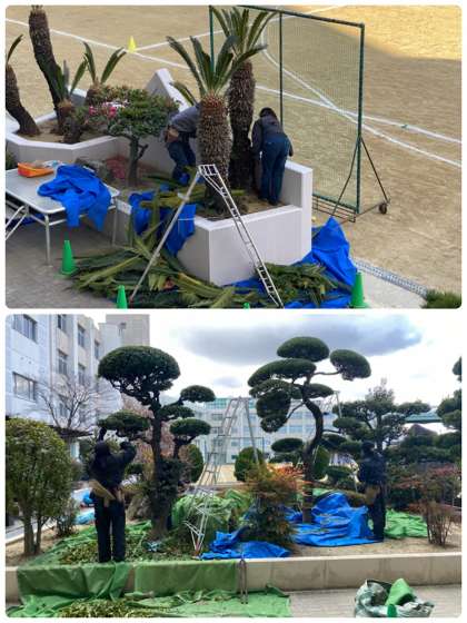 今日、明日と業者の方に入っていただきグラウンド横の様々な樹木の剪定作業を行っていただいています。