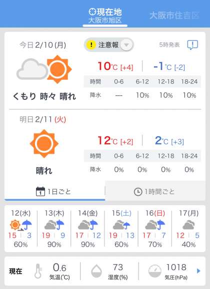 今日の最高気温は、昨日よりも少し高いですが、最低気温は−1度となっています。