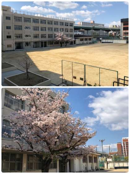 不要不急の外出を自粛するよう要請のある中、なかなか外へ出ることのできない今市中の皆さんへ、少しでも春を感じていただければと思い、学校に咲く桜の写真をアップします。