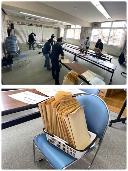 本日、朝から12日【日】13日【月】14日【火】の配付物の準備 を行いました。