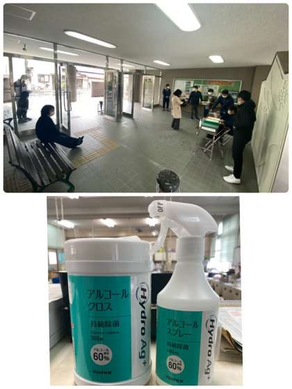 保護者の方々に教科書や教材などを取りに来ていただいております。