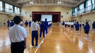 その後、体育館へ移動し、ラジオ体操やストレッチを行い、体を動かしました。