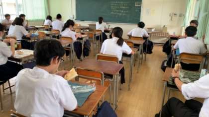 また、給食も一部再開しました。パンと牛乳のみで、全員前を向いて食べる、という形でしたが、学校生活の再開を実感できる時間でした。