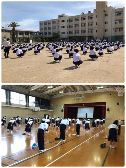 今年度の始業式は、ソーシャルディスタンスを考慮しグランドで間隔を広く取り行われました。