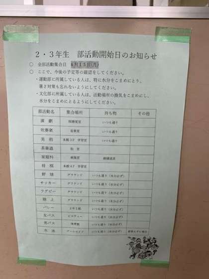 そんな中ですが、少し明るいニュースとして来週15日から部活動が再開することとなりました。