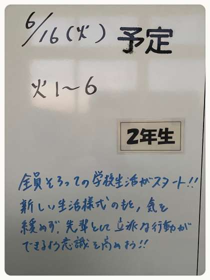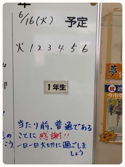 今市中学校では、職員室前に連絡黒板(ホワイトボード)があります。