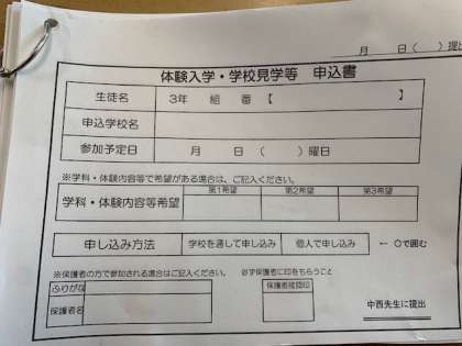 学校によって、中学校を通しての申し込み、個人での申し込みがあります。