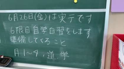 3年生の各教室を見渡すと、6月26日(金)の実力テストについての連絡が書いてあります。