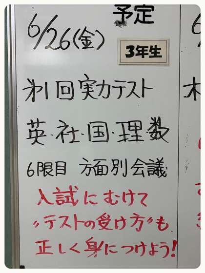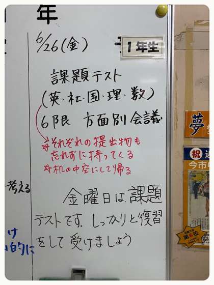 明日は、1・2年生課題テスト、3年生実力テスト が行われます。